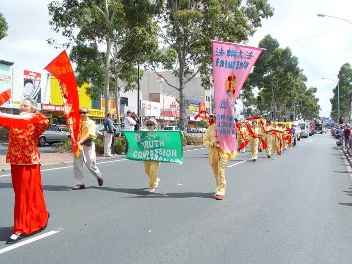 【明慧网2004年1月30日】1月26日,墨尔本法轮功学员应邀参加了分别在大丹顶农市(City of Greater Dandenong) 及金斯顿 (City of Kingston) 举行的澳大利亚国庆日庆祝活动,获得好评。大丹顶农市的活动组织者还诚邀学员们明年再次参加,而且主动提出将提供双倍的展位,让学员们有更大的空间表演功法和其它节目。
