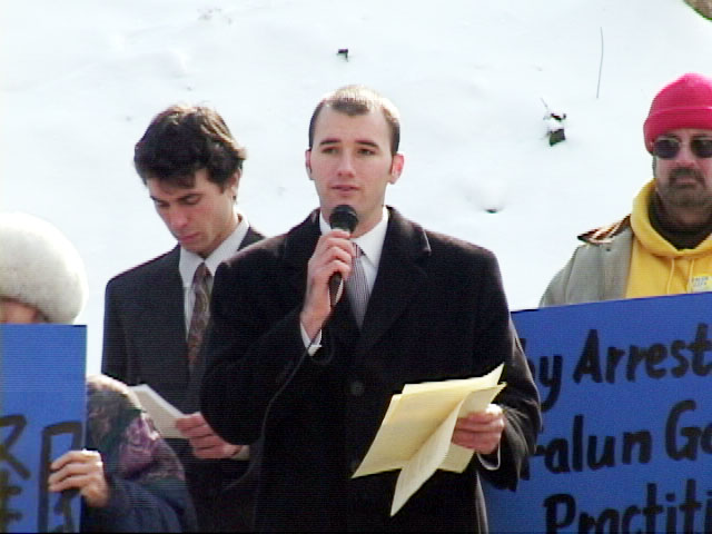 华府法轮功学员吉瑞-皮尔曼宣读了华盛顿特区法轮大法协会写给法国驻美国大使Jean-David Levitte先生的公开信。在新闻发布会后,法轮功学员代表向法国驻美国大使馆递交了公开信。随后,法国大使馆官员出来接见了法轮功学员。学员们详细向这位官员讲述了中国大陆独裁者江泽民以小人的妒忌和偏执发动的对法轮功的这场残酷迫害,在持续四年多时间里,已至少有870位无辜的法轮功学员被迫害致死,江泽民及其帮凶在世界六个国家被起诉的事实真相。法轮功学员同时要求法国政府调查巴黎警察无理拘捕法轮功学员的事件,并对此做出解释和道歉。法国大使馆官员接受了所有法轮功真相资料,并表示将把华府法轮功学员的要求转达给法国驻美大使及法国内政部官员。