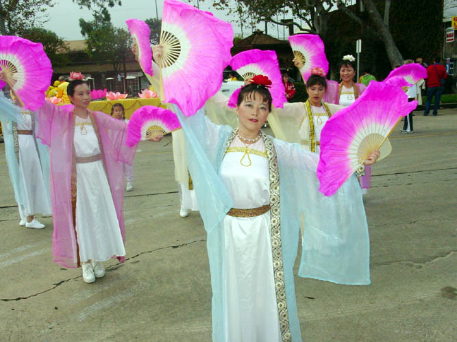 【明慧网2004年1月30日】2003年12月7日,加州圣地亚哥地区的法轮功学员参加了在著名的海滨风景旅游地拉荷亚(La Jolla)举行的节日游行,法轮功队伍的祥和美好深受当地民众的喜爱,法轮功花车获得组委会颁发的“色彩最鲜艳奖”(The Best Colorful Award),组委会成员并多次邀请法轮功继续参加明年的游行。