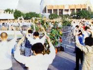 一次我去商店买花,售花的是一位小姑娘,她问我买花放在什么地方?我说:“放在我师父的像前。”她问:“你师父很有名吗?”我说:“是!”她拿起一束荷花说:“这花如果放在佛的像前,一定很好!”我也正想买荷花。临走时我问她:“你知道我的师父是谁吗?”她说:“当然知道!是'法轮功'的李大师!”