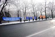 2004年元月2日,比利时法轮功学员来到中国领事馆前,抗议江氏集团对法轮功学员的暴行,悼念几天前被残酷迫害致死的长春法轮功学员刘成军。