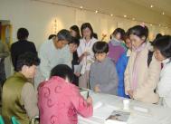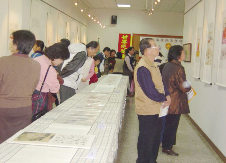 来参观的民众很多,许多美术班和国小的学生还带着笔记、学习单来仔细记录。现场并有画册、书籍及复制画义卖。义卖所得捐助营救大陆受迫害法轮功学员活动。章女士热心为购买书籍、画作的民众签名祝福。展览最后一天,画册和许多复制画都已售完。