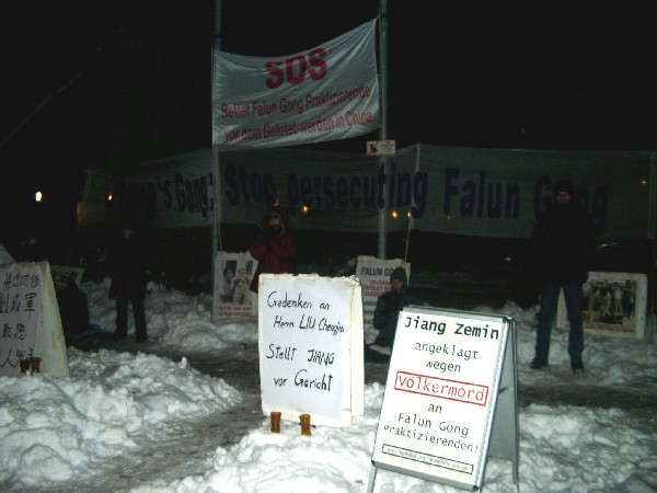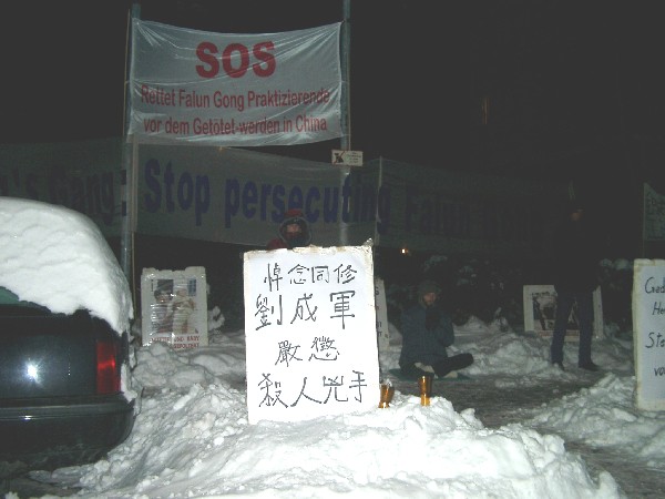 【明慧网2004年1月8日】1月6日,奥地利的大法弟子在中国驻奥使馆前悼念同修刘成军,呼吁严惩杀人凶手。在去年奥地利学员呼吁营救刘成军和吉林众多绝食中的大法弟子的活动后,不断有人继续询问是否有关于刘成军的新消息,不想新年伊始就惊闻刘成军被迫害去世的消息。