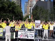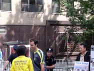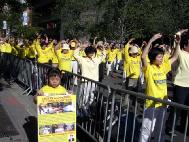 明白真象的人们,总会激动的对法轮功学员说:“你们做的真好,我能为你们做什么?”有一个天真的小女孩,跑来跟学员说,昨天她在46街第一次知道法轮功在中国受迫害的情况,今天在她的生日聚会上,她就告诉她所有的朋友。有一位来自爱尔兰的老太太也说,“我已经写信给我的议员,回去后我还要继续写。”