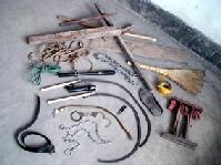 昌乐劳教所摧残折磨大法学员的刑具――电棍、胶皮棒。 |  凶器:铰电线圈用的剪刀 |  用铰电线圈用的剪刀刺划大法学员的脚心。 |