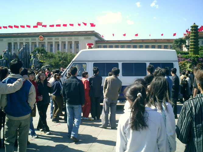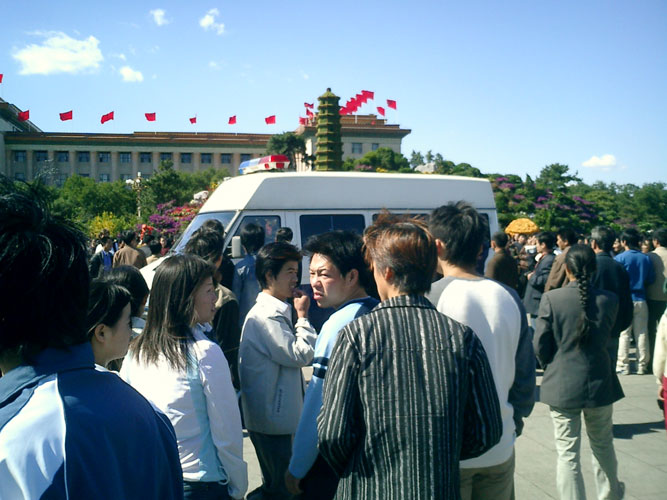【明慧网2004年10月1日】2004年10月1日国庆节中午,北京天安门广场上再次发生了警察暴力殴打抓捕法轮功学员的事件,很多群众见证了这一暴行。人们都在纷纷议论,好多人都说:“今天总算是被我们亲眼看见了。”