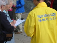 【明慧网2004年10月11日】在2004年9月27日的那个星期,工党在英国布莱顿市(Brighton)举行为期数日的年会。在大会的后两天,由数位法轮功学员举办的一场小型的反酷刑展就在会议大厅入口外面举行,活动的目地是将这场在中国已经夺走1059名无辜生命的迫害法轮功学员事件,告知这些代表们、大众和媒体。