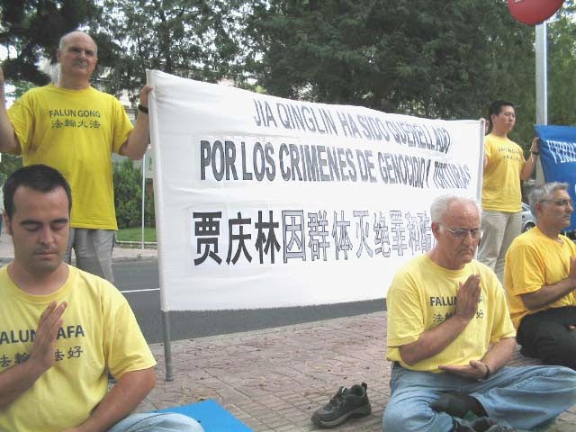 2004年9月6日上午,学员们来到TOREDO市洪法讲真象,发正念清除另外空间的邪恶。这里是贾庆林西班牙之行的第三站。TOREDO是西班牙著名古都,来自世界各地的游客很多。学员们在市中心广场摆放真象图片,演示功法,讲真象。游客们在了解了真象后,纷纷在签字板上签名表示声援法轮功学员,呼吁停止迫害。