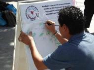 来来往往的行人很多,其中也有一些中国人,他们中有的是本地华侨,也有代表团的成员,学员们抓住这个好机会,向每一个路过的人讲真象,发放真象传单。有一位先生(中国人)接过传单后停住脚步认真地读起来,学员问他:“您了解法轮功的真象吗?”这位先生说:“我了解、了解,法轮功受了大冤屈了。我一直在关注这件事,这是有史以来最大的一场迫害啊!江××害死了那么多好人哪!我虽然不炼法轮功,但我知道法轮功非常正、非常好……我全力支持法轮功!”因为过往行人很多,很多人停下脚步观看真象图板和传单,并纷纷询问这里发生了什么?这位先生看到讲西语的学员人手不够,便主动向一名举横幅的西人学员要求,自己来替他举横幅,让这位能讲西语的学员去向人们讲真象。在傍晚美丽霞光的辉映中,我们看到这位先生与法轮功学员们站在一起,手持法轮大法的横幅,面色凝重、庄严。我们被深深感动了:这样一位觉悟了的生命,他已经为自己开创了一个无比美好的未来。