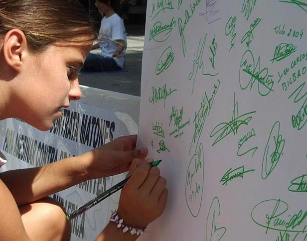 很多西班牙人在看了迫害图板后,纷纷表示愤慨与不解,并纷纷谴责江××集团的邪恶行径,很多人要求签字声援,有两位衣着考究的老年女士一再问我们什么时候再到这里来,她们说要叫上朋友们也来签字……