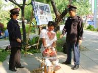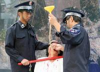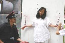 ![]() 媒体争相拍摄(扎竹签) | ![]() 烧烙刑 | ![]() 坐老虎凳 |