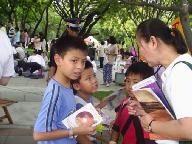 活动中有很多小朋友从害怕到主动想了解真象,每个人都主动拿了真象材料及光盘。当知道还有明慧学校时,更是睁大眼睛很有兴趣的要了地址说:回去告诉爸妈带他们去上明慧学校,有一位小朋友表示要炼功,善良纯真的表情令在场很多人发出会心的笑容。