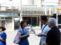 10月1日星期五,从上午11点到下午2点,15名法轮功学员在以色列何伦市维兹曼广场上举行反酷刑展。