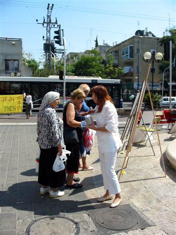 以色列的法轮功学员们正在全国范围内举办反酷刑展,以揭露这场在中国已历时5年的对上亿无辜民众的残酷迫害。举行这些反酷刑展旨在唤起人们对这场残酷迫害的关注,并以此揭露迫害,最终将其制止。