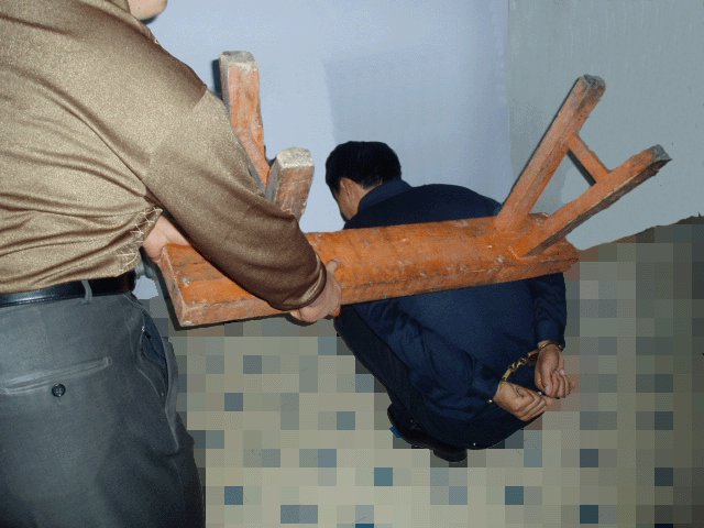 一、 强迫学员蹲在地上,手背在背后,犯人或警察用板凳猛击学员头部、背部;法轮功学员稍有不从,立即被以更残忍手段折磨。
