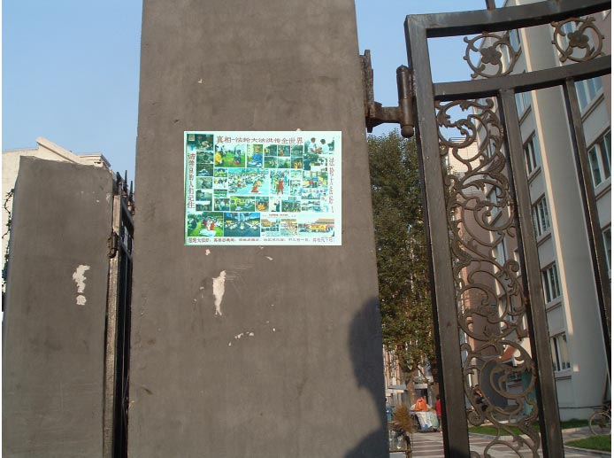 这是在街头巷尾等处悬挂和张贴的部分真象条幅和传单。 一念正行驭清风,踏灭邪浪展长缨;万路行来万路语,谨记师言救苍生!