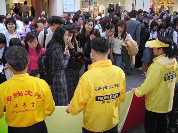 日本律师联合会2004年10月7- 8日在宫崎市召开拥护人权大会,来自全日本各地的1200多名人权律师参加了这个会议。大会前一两天,学员事先赶到宫崎市,向会议组织者讲真象,组会者同意将法轮功真象资料放在可供与会者自由索取的地方。7日上午,学员们将600多份真象资料亲自递到了律师们的手里。8日这一天学员们主要利用律师们开会期间的休息场所面对面讲真象。
