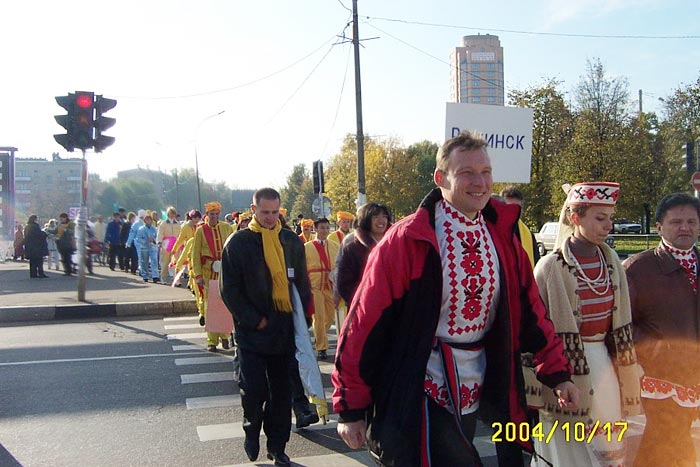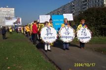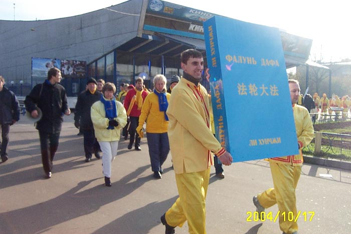 17日,法轮功学员在莫斯科社区举行了大游行。游行队伍最前面是“真、善、忍”三个大字,随后是巨大的法轮大法书籍的模型。游行队伍中的“法轮大法好”巨幅标语和腰鼓队、扇子舞、身穿民族服装和炼功服手持小旗和彩球的方队,展示了大法的美好;揭露酷刑的展板和“立即停止迫害法轮大法学员”、“严惩迫害大法学员的元凶” 巨型横幅的方队向人们详细揭露了在中国已经发生和正在发生的江氏集团非法和惨无人道的迫害法轮功学员的事实真象和罪行。
