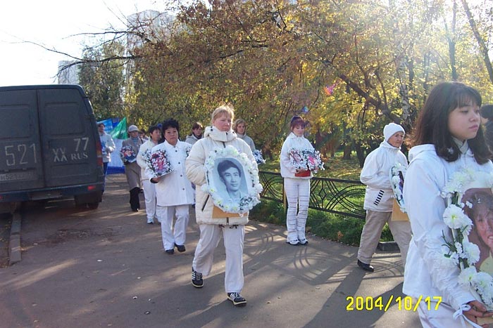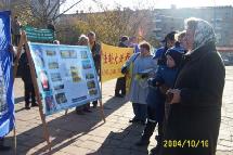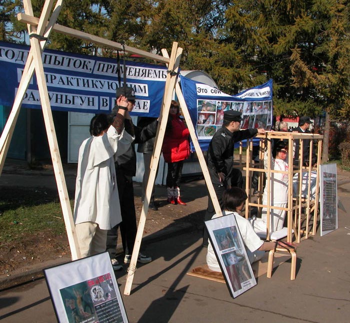 16日,法轮功学员分别在莫斯科国民经济展览馆附近举行了旨在揭露江氏集团残酷迫害法轮功的真人模拟酷刑展并在西北区举行了洪法、反迫害集会。学员们向世人讲真象,揭露江氏集团残酷迫害和虐杀法轮功学员的罪行。发放了大量的真象资料和光盘。