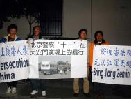 10月1日,获悉在“十一”国庆节中午,北京天安门广场上再次发生了恶警暴力殴打、抓捕法轮功学员的事件,旧金山湾区法轮功学员于当晚前往中国驻旧金山总领事馆静坐请愿,呼吁各界共同制止江泽民一伙继续迫害法轮功学员的暴行。