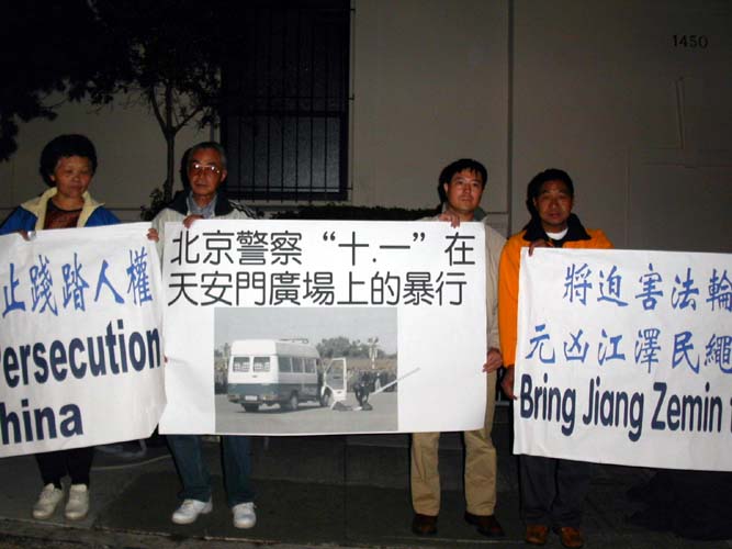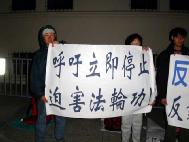 ![]() 法轮功学员在中领馆前要求制止暴行 | ![]() 法轮功学员在中领馆前要求制止暴行 | ![]() 法轮功学员在中领馆前请愿 |