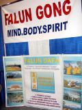 ![]() 博览会上介绍法轮功的展台 | ![]() 功法演示 |