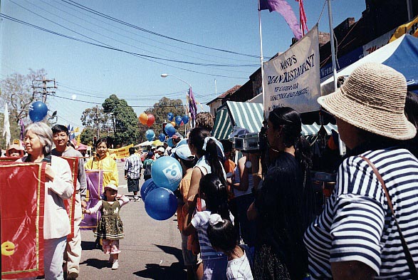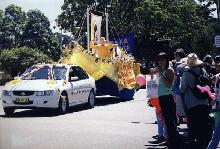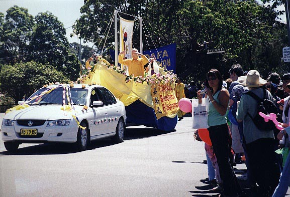 伊斯特伍德市所在的地区,是澳洲总理霍华德所在的选区,每年有数位议员到场参加。今年的10月16日,法轮功学员如同往常一样,设置了信息台供人们索取有关法轮功的信息,并现场教功。不同的是,这次的节日游行中,增加了“法轮大法洪传世界”的内容,今年的花车也格外别致,是西人学员早晨4点就起来精心装饰的。