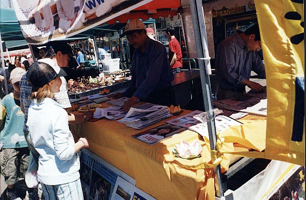 由于当地报纸在两个月前刊登了大卫-梁在南非遭枪击案的消息,许多居民主动来到信息台前签名支持停止对法轮功的迫害。一位华人认真的看着学员的功法示范,并问:“法轮功容不容易学啊?哪里有炼功录音带?”经过学员的讲解,他表示要到图书馆去借阅《法轮功》。