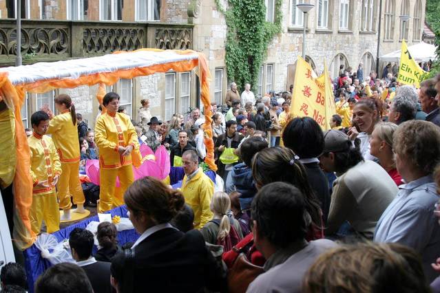 ![]() 参加比勒费尔德文化节游行 | ![]() 参加雅典游行──腰鼓队 | ![]() 在学校里的信息日设摊位 |