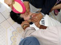 ![]() 演示图6 管教陈丽丽见我坚决不配合,又找了一名男恶警管教,使劲掐住我的两腮,狠狠捏住我的鼻子。 |