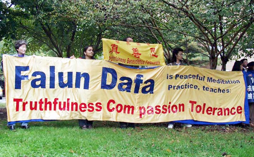 ![]() 法轮功学员呼吁 法办江氏集团 | ![]() 法轮功‘真善忍’横幅 |