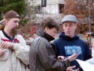 其余学员举横幅,炼功,发资料,征签,向路人讲真象,有条不紊,不需要有人调配,看到哪个地方需要人,就会自动补上去。