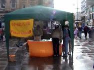 哈德斯菲尔德据说是英国最大的城镇。2004年10月22日, 这里的法轮功学员和附近城市的一些学员在市中心举行了一次洪法活动。 这天的天色比较阴暗,而且风雨交加