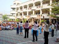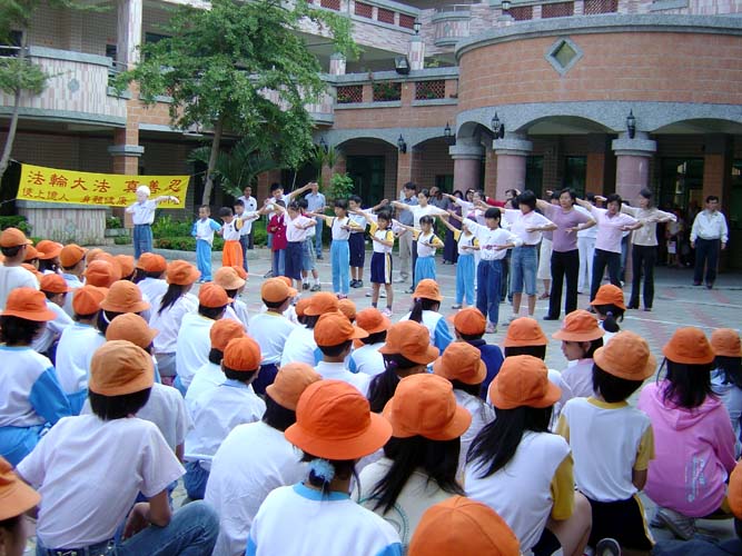 行政院在推广全民运动,而且附近几所学校也有在推广法轮功。我们得到行政院体委会核准在学校推广法轮功,使师生身心都能够受益。早上炼功点主要针对家长及学生推广,他们炼了以后一些慢性病都有一个程度改善,学生在学校表现也比较好。