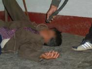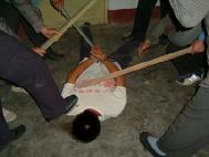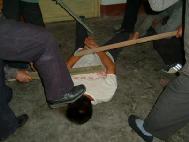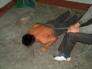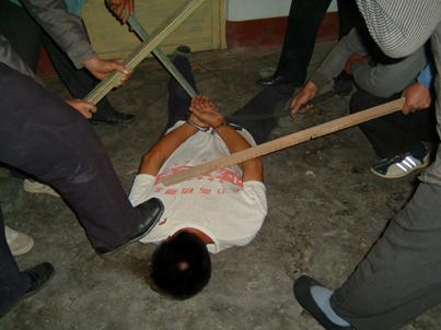 ![]() 2000年10月,于河大法弟子被于河镇4、5恶人,威逼其双手伸直打开,然后毒打他。 | ![]() 2000年10月6日,于河王新民等恶人,将大法弟子脱去上衣,用胶皮棍殴打。 |