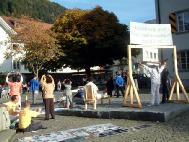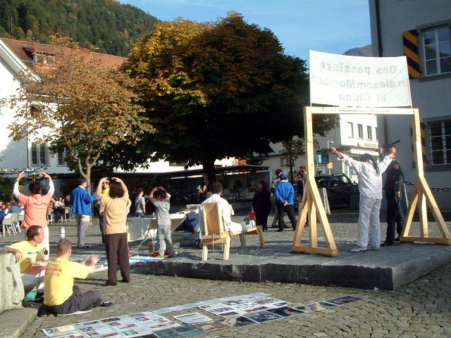 【明慧网2004年10月29日】经瑞士URI市警察局批准,2004年10月23日,瑞士大法弟子在URI市中心广场举行了反酷刑展,同时展出了法轮功发展历程的图片和江氏集团迫害法轮功罪证的照片,吸引了许多观众。很多游人索取大法资料和签名予以支持,并说:你们做得好!你们一定能成功!