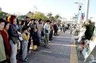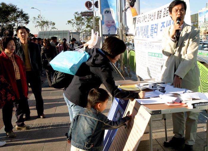 【明慧网2004年10月29日】水原是连接韩国京畿道南部的重要枢纽城市,每到周末,来自于周边中小城市的许多外国劳务人员都要到水原站来乘车。2004年10月23日(星期六)我们在宽阔的站前广场上举行酷刑展,向世人展示中国大陆法轮功学员在镇压中所受的残酷迫害