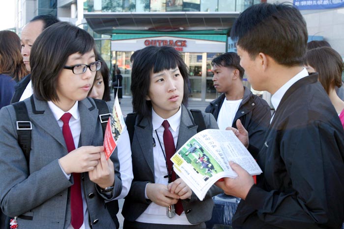 学员们向人们讲述迫害真象