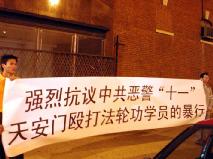 洛杉矶法轮功学员中领馆前抗议北京警察天安门暴行(图)