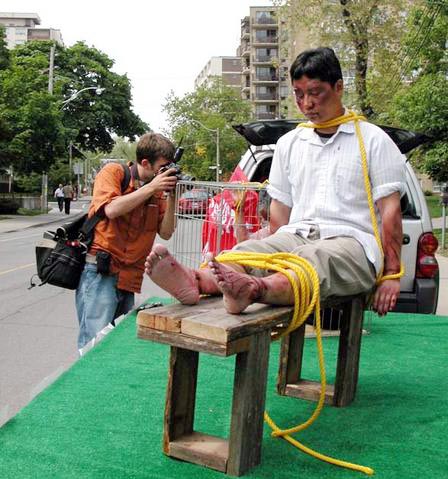 在三个星期中,你可以到公园学习法轮功,这位年轻的广告技术专家每天早上9点到晚上9点将会在那,在这段时间,他会炼简易的功法,并告诉路人有关捍卫与维护人权的事情。