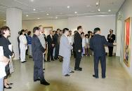 ![]() 画展剪彩场面 | ![]() 向来宾解说画作 |