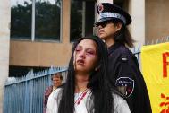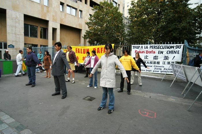 江××集团对法轮功的残酷迫害深深的震撼了一位法国职业摄影师,伯纳德先生(Bernard),他现场拍了大量照片并允许学员免费发表它们。他还祝愿法轮功学员坚持下去。
