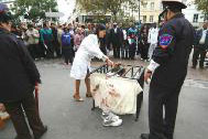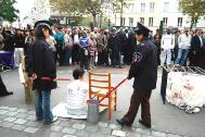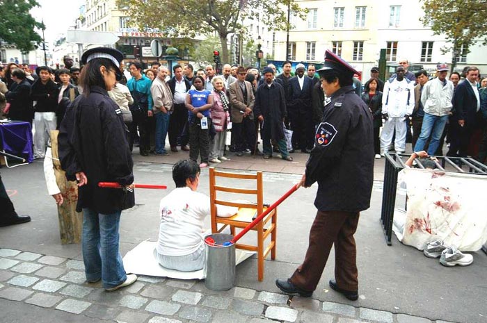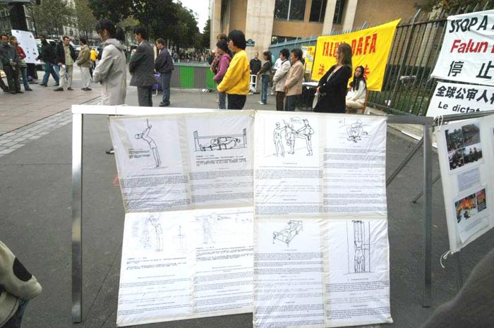 【明慧网2004年10月5日】继今年夏天法轮功学员在巴黎华人聚居的十三区举行酷刑展之后,2004年9月24日,法国的部分法轮功学员在巴黎另一主要中国城──美丽城(Belleville),再次举办酷刑展,向民众讲真象。
