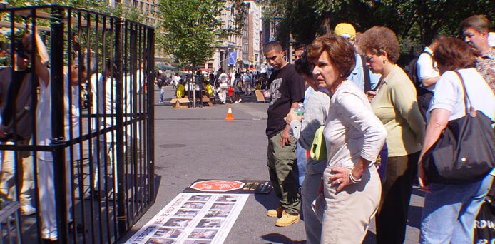 人们参观在联合广场公园举办的酷刑展。