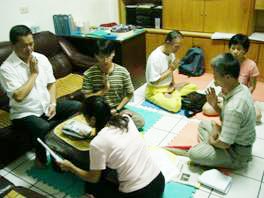 就是这样的一个念头:要把法轮功的好告诉大陆的人民知道。使得原本单纯的读书聚会变得更庄严神圣;因为大家一致赞成,要透过打电话的方式来告诉大陆人民法轮功真象,和要求大陆公安或劳教所等相关单位停止迫害大陆法轮功学员。