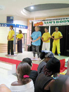 ![]() 学员向观众介绍法轮功、讲真象 | ![]() 功法展示 | ![]() 讲法轮功真象 |