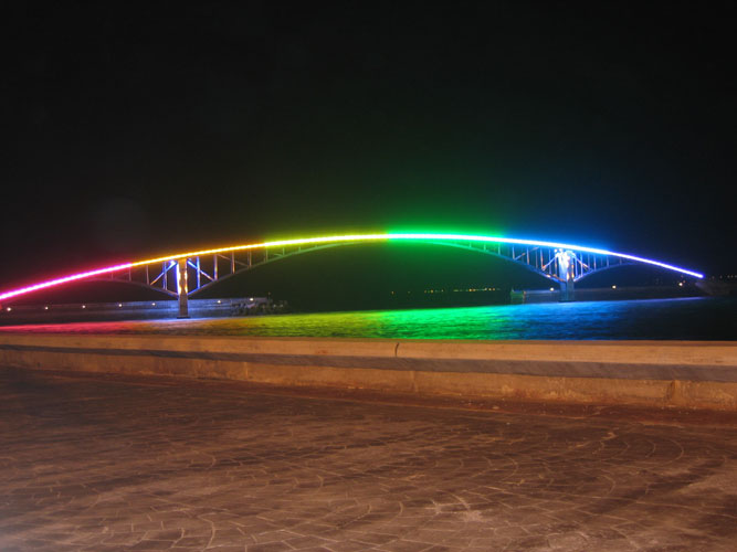 ![]() 腰鼓队引领民众走过的西瀛虹桥 | ![]() |