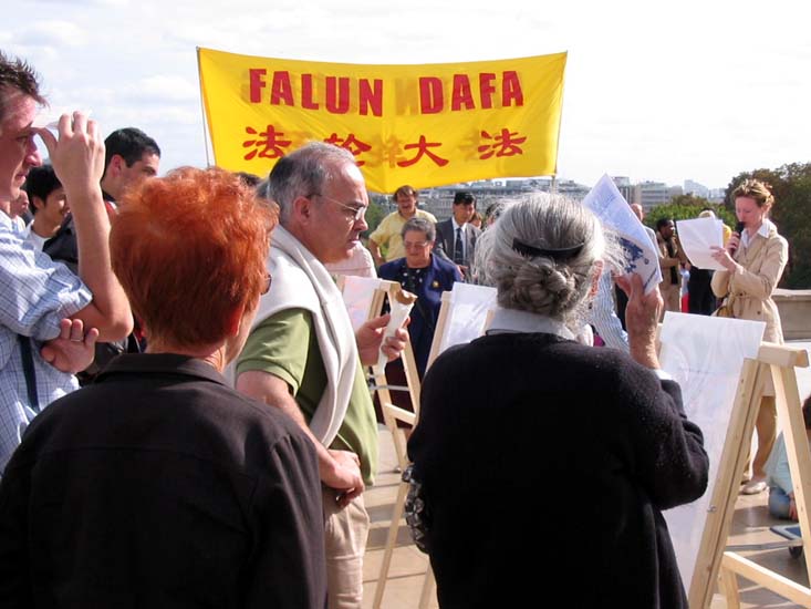 【明慧网2004年10月9日】2004年10月3日,法国法轮功学员在巴黎人权广场上举办了