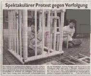 2004年10月30日,德国埃尔朗根和周边城市的法轮功学员举办了酷刑展,向人们演示中国监狱的警察是怎样酷刑折磨那些信仰“真、善、忍”的修炼人的。