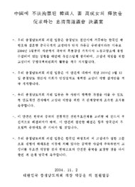 2004年11月2日大韩民国忠清南道议会所属36位议员一致通过决议案,要求立即释放因修炼法轮功而于2004年5月至今被拘禁于黑龙江省佳木斯市劳教所的韩国人妻子高成女。